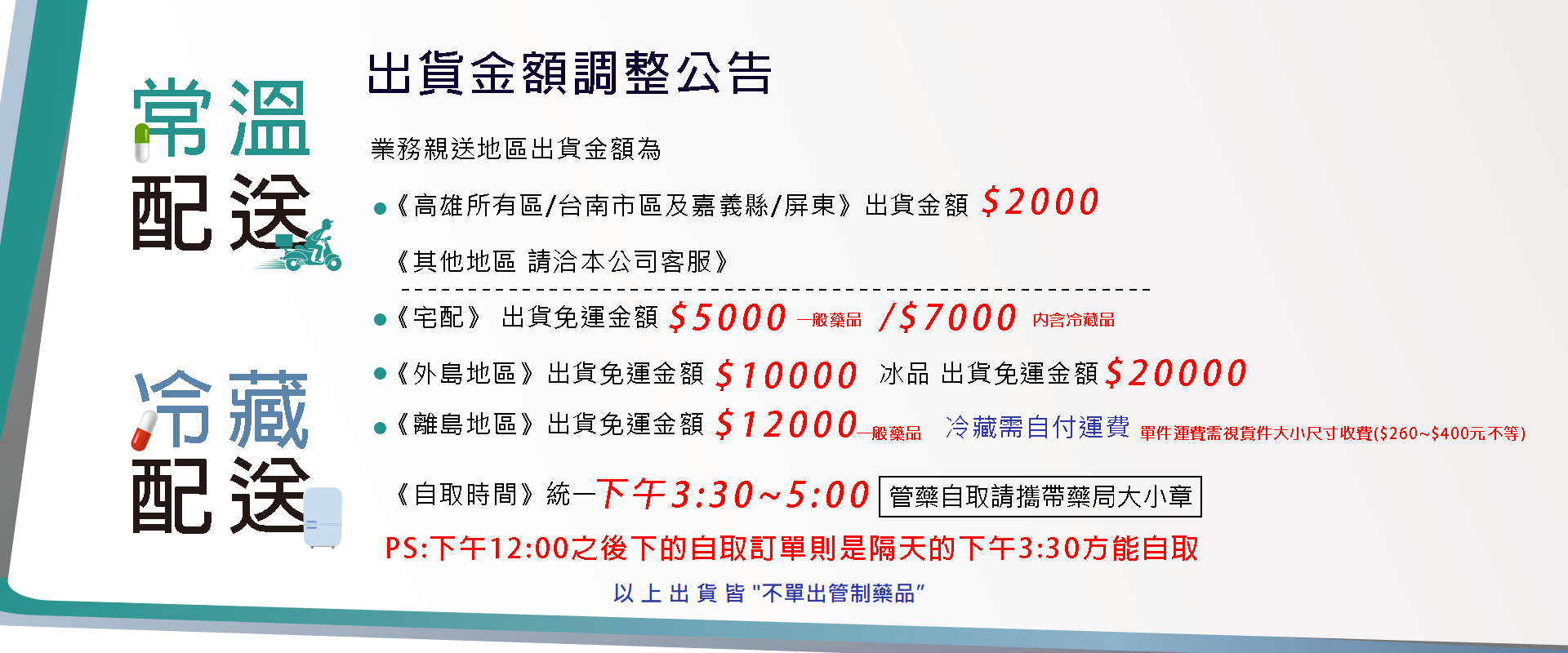 【出貨金額調整公告】