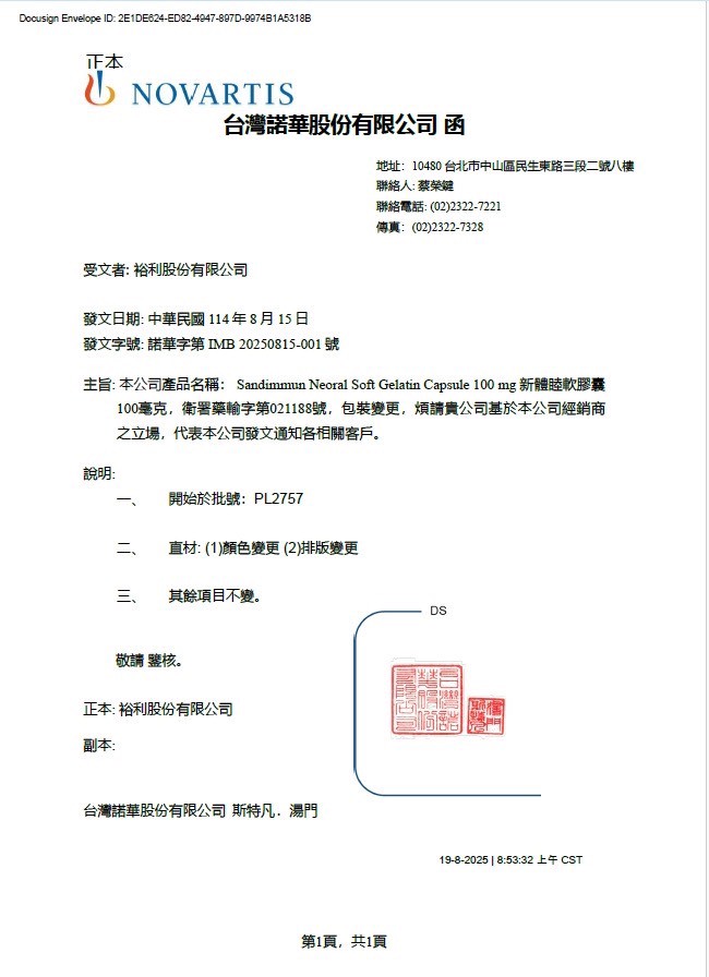 【包裝外觀變更公告】 新體睦軟膠囊100毫克 包裝變更